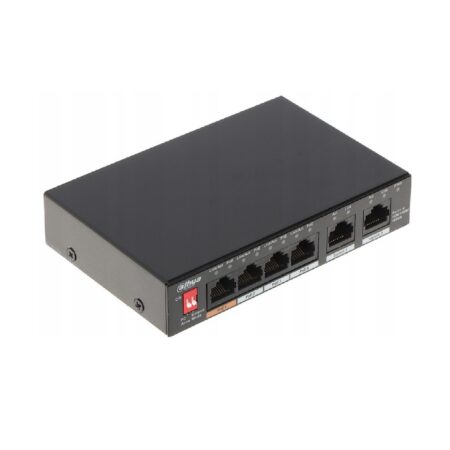 Dahua PFS3006-4ET-60-V2 6-Port Unmanaged Desktop Switch 4 PoE is a 6-Port 10/100Mbps Unmanaged Desktop Switch with 4 PoE Ports is a type of layer two commercial switch.
