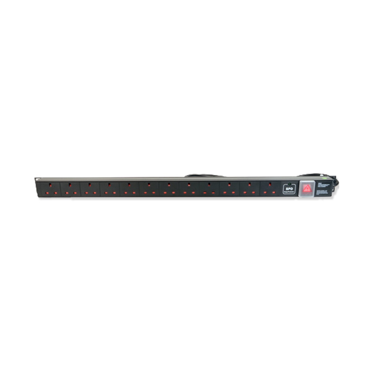 The LMS Data 12-Way Vertical PDU features Twelve (12) 13A UK Socket outlets with a 13A Fused UK Plug and an Illuminated On/Off Rocker Switch, making it ideal for use with the LMS Data cabinet series.Â