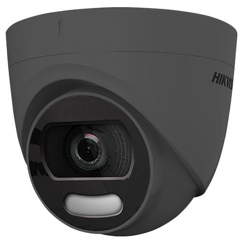 The Hikvision DS-2CE72DFT-F28 Turbo HD ColorVu Grey Outdoor Turret CCTV Camera is a high performance outdoor surveillance CCTV camera capable of recording in two (2) megapixel resolution. With a 2.8mm lens and up to 20m white light distance, this Hikvision DS-2CE72DFT-F28 outdoor turret camera is equipped to tackle any outdoor security surveillance solution.