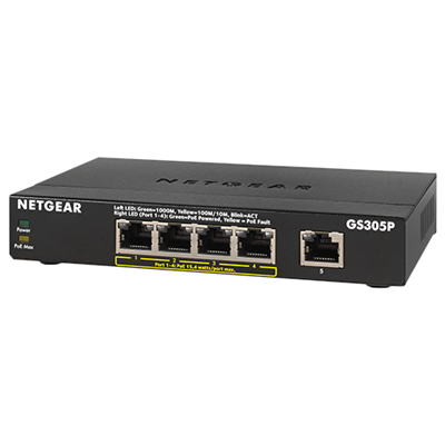 NETGEAR GS305EPP Plus 5-Port Desktop Gigabit PoE+ Switch meets the needs of growing businesses by providing fundamental network