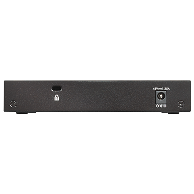 - Five (5) port Gigabit switch, with four (4) ports supporting PoE+ for a total PoE budget of 63W.