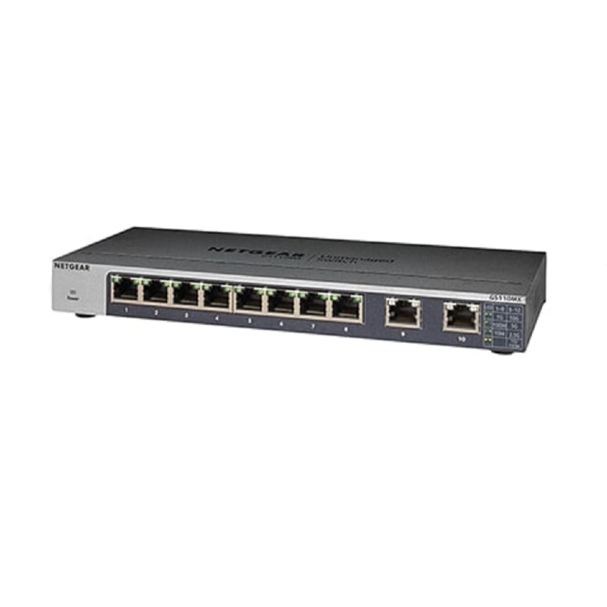 - GS110EMX 8-port Gigabit Switch with 2-port 10-Gigabit/Multi-Gigabit Uplinks
