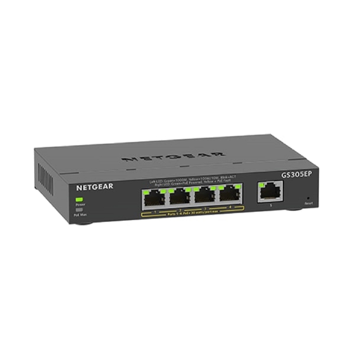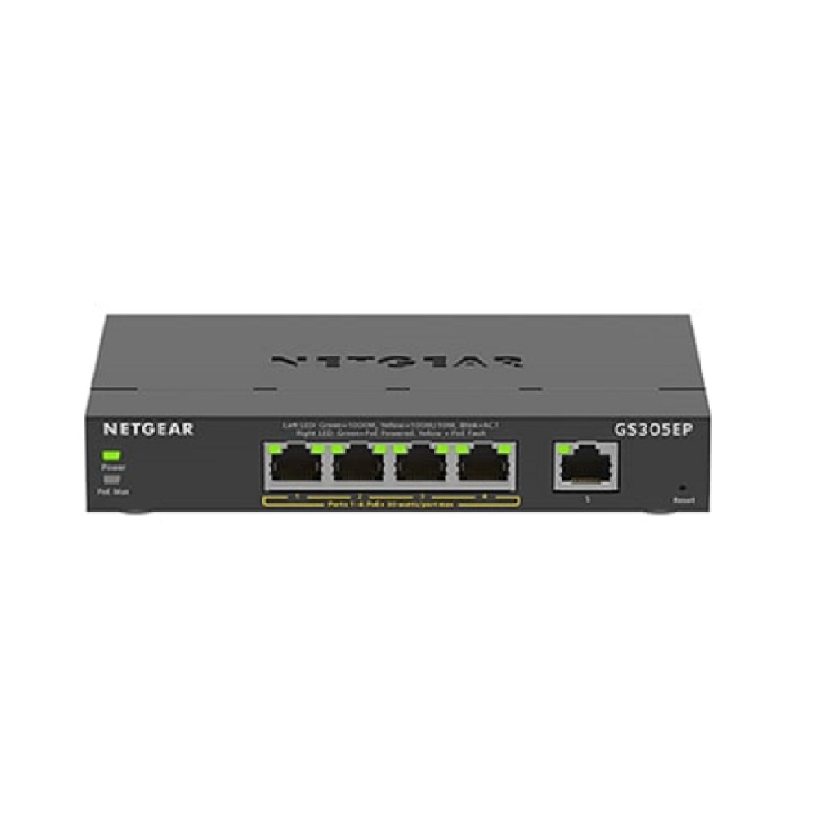 NETGEAR GS305EP 5-Port Desktop Gigabit PoE+ Switch meets the needs of growing businesses by providing fundamental network.