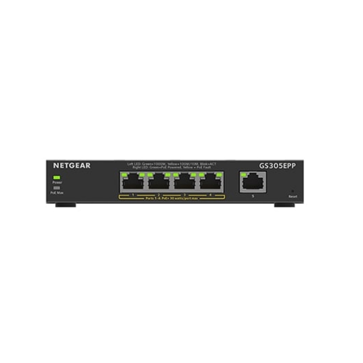 NETGEAR GS305EPP Plus 5-Port Desktop Gigabit PoE+ Switch meets the needs of growing businesses by providing fundamental network features including simplified VLANs, QoS and IGMP Snooping, that will help optimize the performance of the network. The GS305EPP is the perfect upgrade from an unmanaged switch, delivering essential networking features.