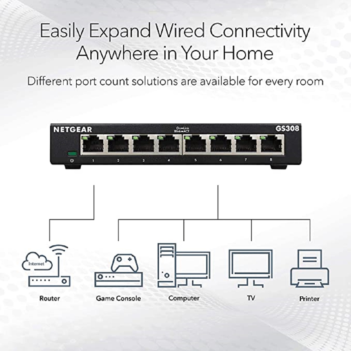 NETGEAR GS308 8-Port Desktop Gigabit Switch (Ethernet RJ45 Ports)