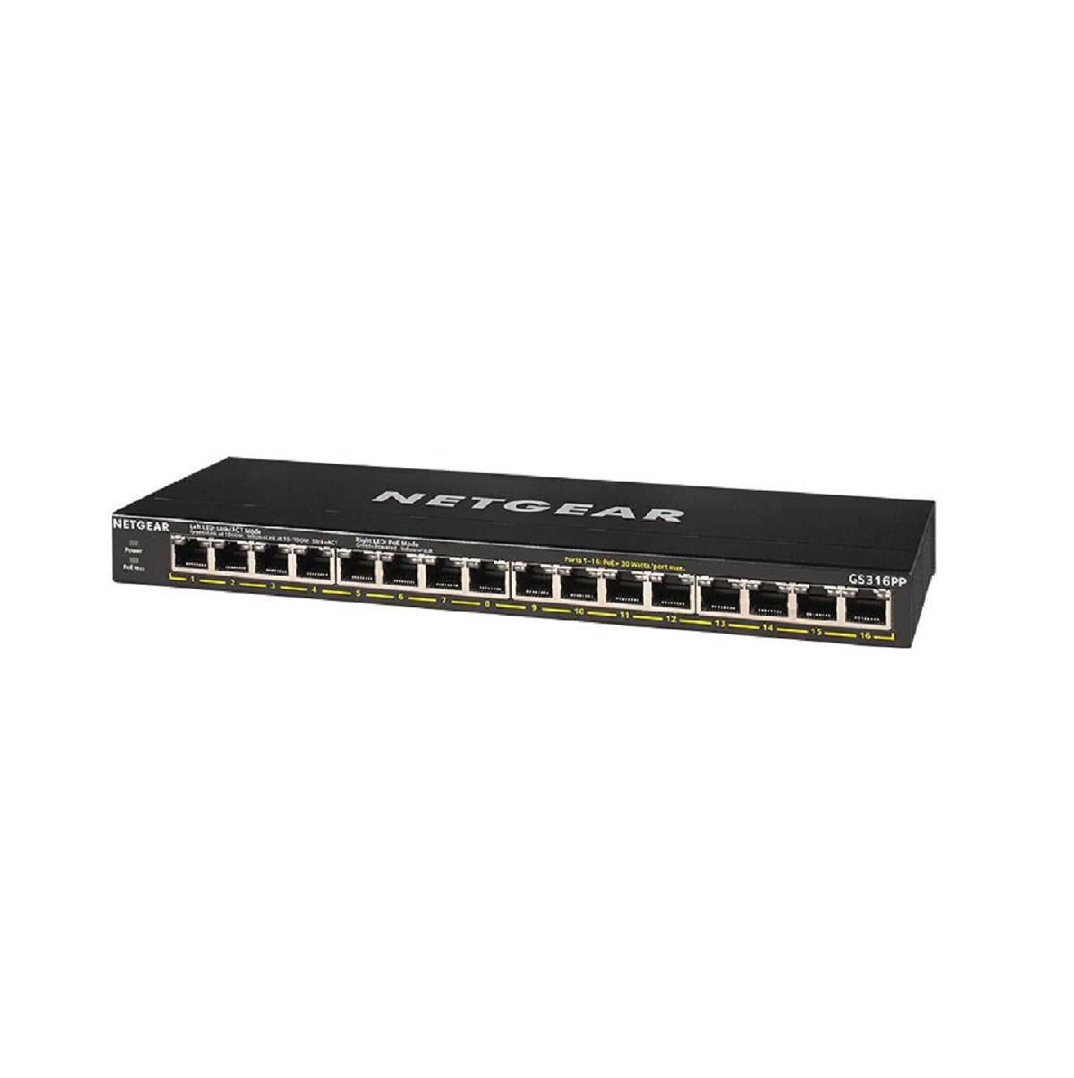 NETGEAR GS116PP ProSAFE FlexPoE Unmanaged 16 Port Gigabit Switch helps businesses cost-effectively increase power budget to expand their network.