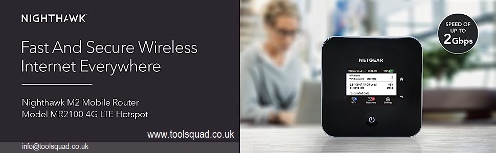 This Nighthawk M2 Mobile Router has a new touch screen design, meaning that managing your network and settings has never been so easy – conveniently monitor data usage, see WiFi name/password, mobile signal strength and manage device and network settings.