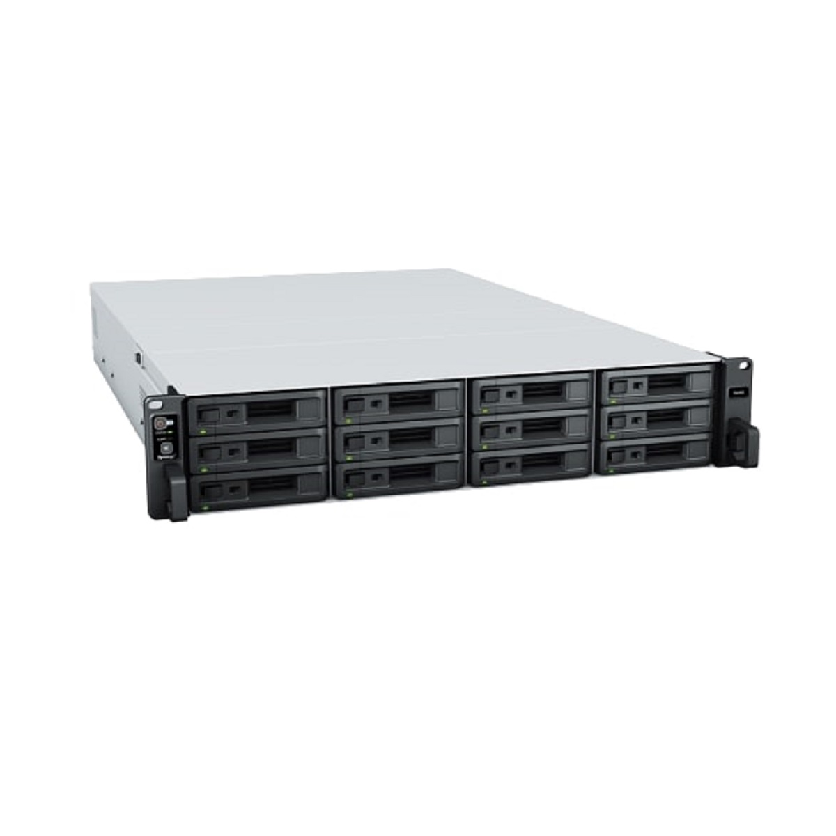 Synology FS2500 FlashStation 12-Bay Rackmount NAS Enclosure device accommodates up to twelve (12) 2.5-inch SATA SSDs in a 1U enclosure.Â