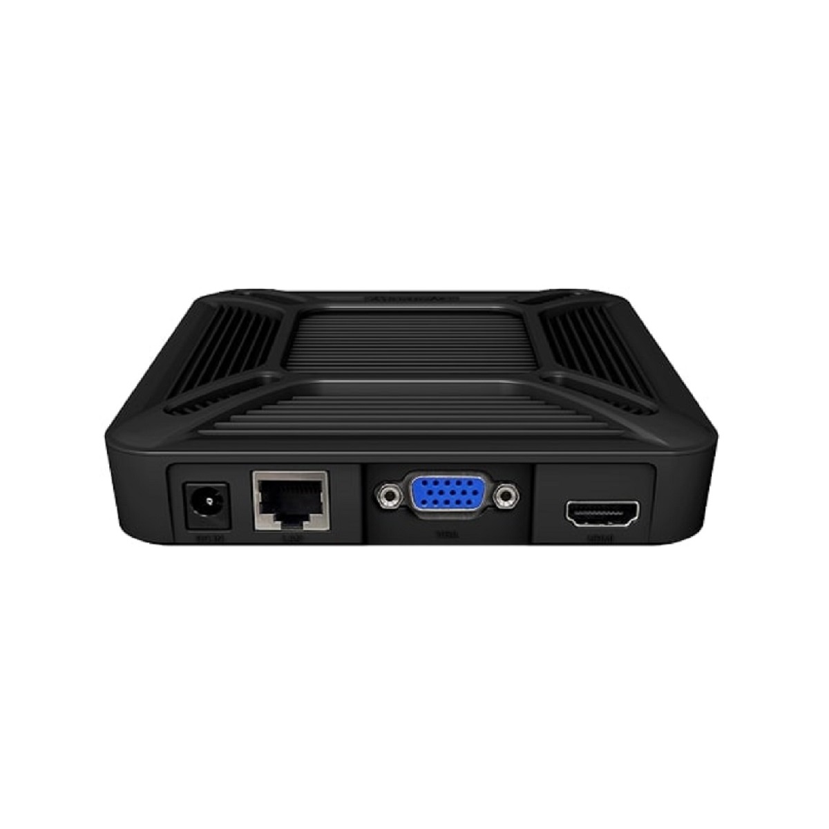 The whole system fits in a palm-sized enclosure and can be easily attached to a wall or the back of a screen with a VESA compatible mount.