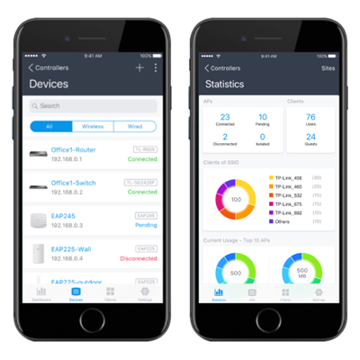 Omada’s Software Defined Networking (SDN) platform integrates network devices, including access points, switches and gateways, to provide 100% centralised cloud management.