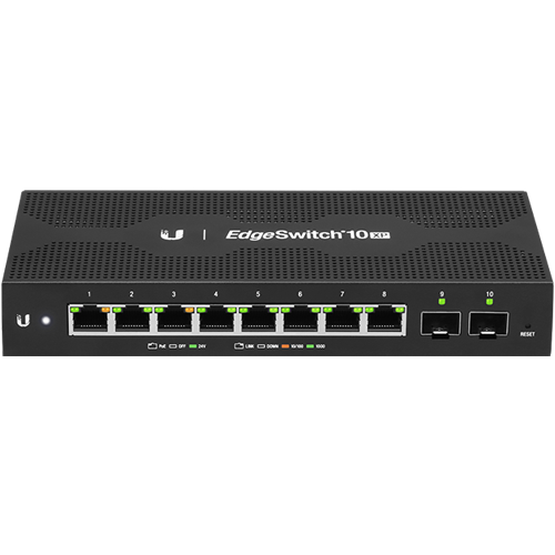 Featuring eight Gigabit RJ45 Ethernet ports and two SFP ports, Ubiquiti’s ES-10XP is a layer 2 switch that can be easily managed through Ubiquiti’s Network Management System (UNMS). The Edge Switch 10XP offers the forwarding capacity to simultaneously process traffic on all ports without any packet loss, providing a total, non-blocking throughput of up to 10Gbps and a switching capacity of 20 Gbps.